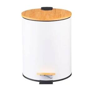 Lixeira Em Inox E Tampa Bambu 5 Litros Com Pedal Branco