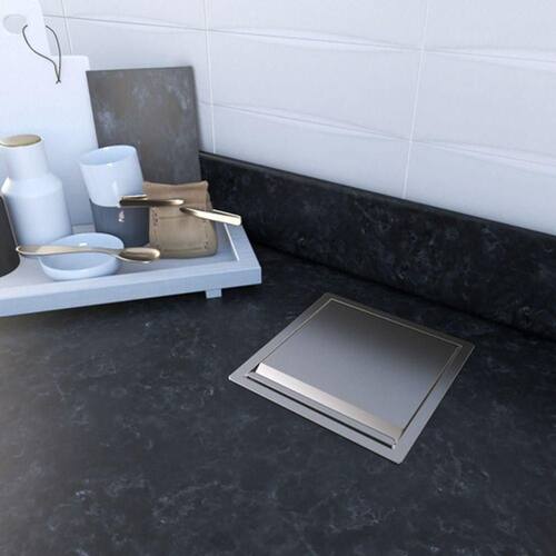 Tampa e moldura de acabamento totalmente em aço inox AISI 304, tampa com exclusivo sistema articulado, balde de 5 litros em aço inox AISI 430, sistema com ladrão para odor.