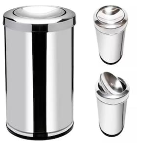 Lixeira Inox Basculante 20 Litros Grande Cesto Lixo Vai Vem Aço Prateada Escritorio Cozinha Banheiro