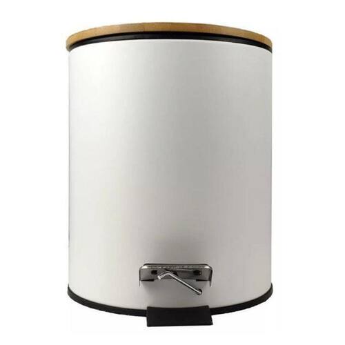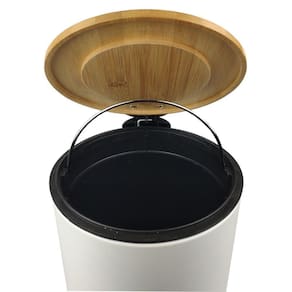 Lixeira Inox Branca 3 L Com Pedal E Tampa Bambu - Branco