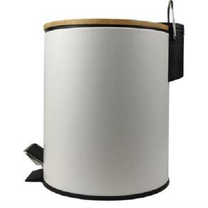 Lixeira Inox Branca 3L com Pedal e Tampa Bambu Wincy