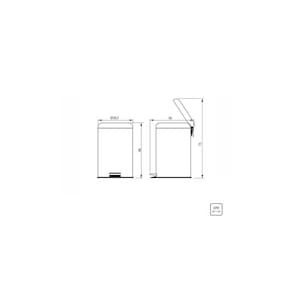 Material: Aço Inox AISI 430 Espessura: 0,4 mm Acabamento: Polido Tratamento anti digitais: Não Alça para transporte: Sim Abertura: Pedal Tampa: Sim, com Sistema Stay Open Fechamento suave da tampa: Não Balde plástico removível: Sim Capacidade: 20 L Saco de lixo recomendado: 30 - 40 L