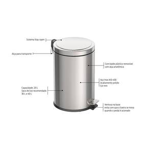 Lixeira Inox com Pedal Tramontina Brasil com Acabamento Polido e Balde Interno Removível 20 L
