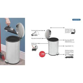 Lixeira Inox com Pedal Tramontina Brasil Plus com Acabamento Scotch Brite e Balde Interno Removível 12 L Sua casa vai ficar mais organizada e bonita com a Lixeira Inox com Pedal Tramontina Brasil Plus com Acabamento Scotch Brite e Balde Interno Removível 12 L. Produzida com materiais resistentes e de bom gosto, ela vai suprir as necessidades do ambiente que você escolher. Fabricada no Brasil, é produzida em aço inox com acabamento scotch brite. A tampa com amortecedor garante maior resistência e um fechamento suave. Por meio do pedal, pode ser acionada mais de 1 milhão de ciclos (abertura e fechamento) e com o sistema Stay Open, quando aberta manualmente, mantem-se fixa na posição, auxiliando no depósito de resíduos. O produto conta ainda com balde interno removível, alça de transporte e ventosa na base para melhor fixação no chão. Muito prática, possui capacidade de 12 L. Informações Gerais Material: Aço Inox AISI 430 Espessura: 0,4 mm Acabamento: Scotch Brite Tratamento anti digitais: Não Alça para transporte: Sim Abertura: Pedal Tampa: Sim, com sistema stay open Fechamento suave da tampa: Sim Balde plástico removível: Sim Capacidade: 12 L Saco de lixo recomendado: 15 - 20 L