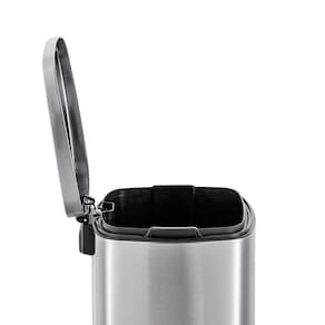 - Pedal resistente que permite a abertura da tampa sem uso das mãos, promovendo maior higiene.