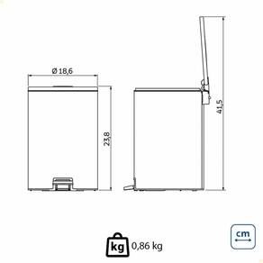 - O sistema de pedal garante higiene total no uso diário, enquanto o balde interno removível facilita a limpeza.