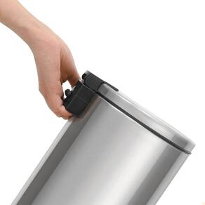 - A lixeira também possui balde interno removível com furação para prender o saco de lixo, além de base antiderrapante, que evita deslocamentos ao acioná-la.