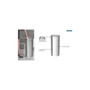 Material: Aço Inox AISI 430 Espessura: 0,4 mm Acabamento: Polido Tratamento anti digitais: Não Alça para transporte: Não Tampa: Sim, basculante Balde plástico removível: Não Capacidade: 30 L Saco de lixo recomendado: 50 - 60 L