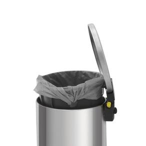 O acionamento por pedal resistente suporta até 1 milhão de ciclos (aberturas e fechamentos), garantindo longa vida útil. A lixeira também possui balde interno removível com furação para prender o saco de lixo, além de base antiderrapante, que evita deslocamentos ao acioná-la;