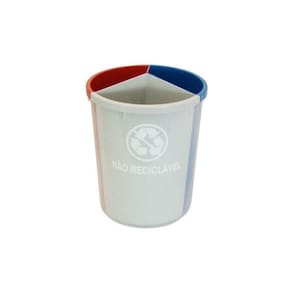 Lixeira Mix Com 3 Divisões Para Coleta Seletiva Lixeira MIX com 3 divisões.Cesto injetado em plástico transparente, com divisões internas coloridas conforme o resíduo a ser separado. Acompanha os adesivos correspondentes (não colados ao cesto).Disponível nas cores:- Vermelho = Plásticos - Azul = Papéis- Amarelo = Metais ou Vermelho = Plásticos - Azul = Papéis- Cinza- Orgânico Demais cores mediante encomenda prévia Medidas: 395 mm (altura) x 315 mm (diâmetro)..- Sua satisfação garantida. Compre com segurança!Milhares já aprovaram. Seja o próximo!Qualidade comprovada. Adquira o seu sem preocupações... Sua satisfação garantida. Compre com segurança!Milhares já aprovaram. Seja o próximo!Qualidade comprovada. Adquira o seu sem preocupações. Marca: Não Informado Ean: 7898109859475