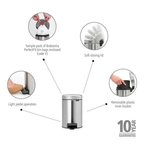 Lixeira New Icon Em Aço Inox 3 Litros Brabantia A linha New Icon da Brabantia combina design icônico com desempenho excepcional para transformar a tarefa de descartar o lixo em uma experiência prática e elegante. Com fechamento suave e à prova de odor, essas lixeiras são ideais para qualquer ambiente, da cozinha ao banheiro.Disponíveis em diversas cores e tamanhos, se adaptam perfeitamente ao seu estilo de vida e decoração. Além disso, são produzidas com materiais reciclados e totalmente recicláveis após o uso, oferecendo uma solução mais sustentável para o dia a dia. A linha ainda conta com base antiderrapante, balde interno removível e garantia de 10 anos, unindo beleza, durabilidade e responsabilidade ambiental em um único produto.Especificações do Produto:- Compacto e ideal para espaços pequenos (3L)- Tampa com fechamento suave e pedal leve- Balde interno removível facilita a limpeza- Tampa com vedação hermética evita odores- Feito com 31% de material reciclado e 96% reciclável- Certificado Cradle-to-CradleFicha Técnica:- Código: 4081301234- Marca: Brabantia- Modelo: New Icon- Conteúdo da Embalagem: 1 Lixeira- Material: Aço inox- Capacidade: 3 Litros- Cor: Prata- Peso: 0,81kg- Dimensões: 26,4cm x 16,8cm x 23,5cm (AxLxP)- Garantia: 10 Anos Altura - 26,4cm Largura - 16,8cm Profundidade - 23,5cm Peso - 0,81kg Sobre a Marca - Após 95 anos de sucesso em suas criações, a Brabantia se repagina e lança o conceito Designed For Living. Com logotipo redesenhado, novas embalagens, paletas de cores contemporâneas e design inspirador, a marca se reinventa sem deixar de lado o que sempre fez com excelência: desenvolver produtos com soluções práticas e inteligentes que facilitem as tarefas do dia-a-dia. Redescubra a Brabantia e inspire-se!
