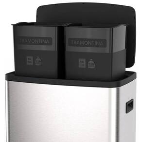 Se você se preocupa com a separação do lixo e com a sustentabilidade do planeta, a lixeira Tramontina Octos 15 L + 15 L é indispensável. Perfeita para compor espaços com muita praticidade e estilo, ela é produzida em aço inox e conta com tratamento especial anti digital, que evita as marcas de manuseio no corpo da lixeira. Possui dois baldes de plástico removíveis de 15 litros com furação lateral, que possibilita prender o saco de lixo, e a tornam excelente para a separação dos resíduos seco e molhado. Além de todas essas características, a lixeira Octos tem fechamento suave e trava na tampa que a mantém aberta enquanto o usuário estiver utilizando e pés antiderrapantes. Escolha Tramontina e tenha um item versátil para compor e manter seus espaços limpos e organizados
