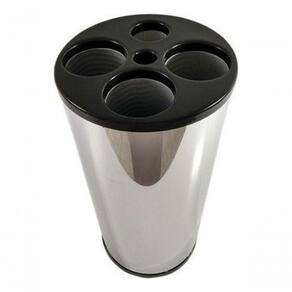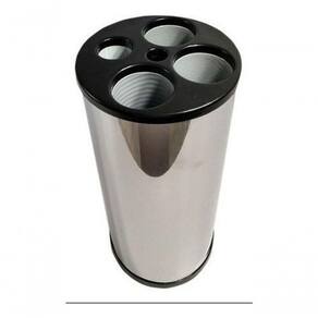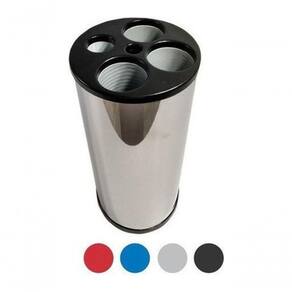 Lixeira Para Copos Descartáveis De água E Café Em Aço Inox LIXEIRA DISPENSADOR DE COPOS DESCARTÁVEIS 4 TUBOS ( 03 Água + 01 Café) INOX Grandes consumidores de água, os brasileiros costumam gerar um grande volume de resíduos descartáveis em locais públicos, sobretudo copos plásticos. Utilizando o coletor para copos de água é possível organizar de forma prática, econômica e higiênica o descarte desses materiais. Corpo cilíndrico confeccionado em aço inoxidável AISI 430 (chapa de 0,5mm de espessura) com fundo em plástico ABS de alta resistência e tampa injetada em plástico polipropileno (PP) copolímero, com 4 (quatro) tubos extrusados de Plástico Poliestireno de Alto Impacto (PSAI)