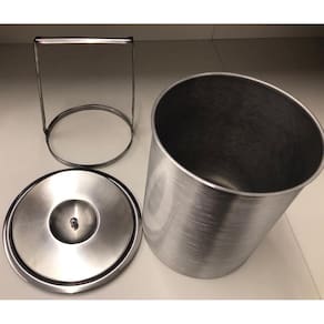 A Lixeira possui Tampa em aço inox 304 Polido e acompanha balde em Alumínio repuxado, não tem pontos de solda para melhor acabamento e não oferece risco de vazamentos.