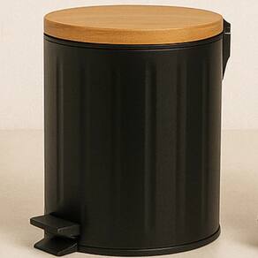 Conteúdo da Embalagem: 01 Lixeira de Banheiro com Pedal e Tampa de Bambu Redonda – 5L