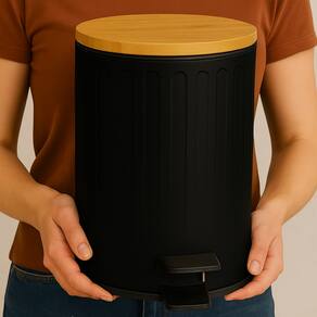 Lixeira de Banheiro com Pedal e Tampa de Bambu – 5L