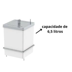 Especificações - Medidas: 59.5cm (altura) x 19,5cm (largura) x 19cm (profundidade) -Peso: 1,286 kg - Matéria-prima: Aço Carbono + Plástico - Cor/Acabamento: Cromado + Branco - Capacidade: Suporte para 1 rolo de papel higiênico e 1 Lixeira de 6,5 litros - Linha: Perfezione