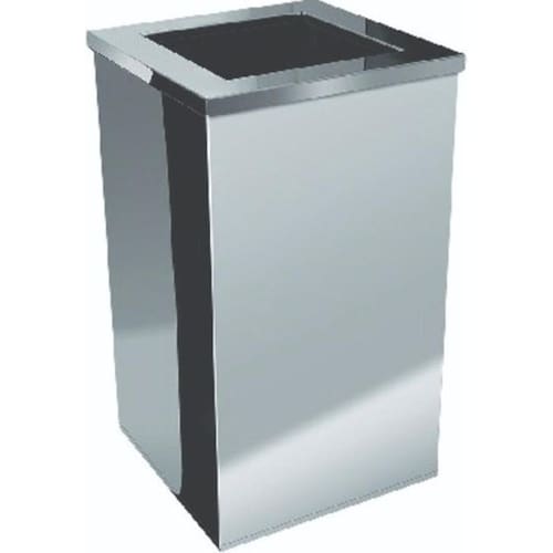 Lixeira quadrada em aço inox com tampa aro aberta 50 l Cor: prateado Lixeira quadrada com tampa aro, tipo aberta confeccionada em aço inoxidável aisi 430.