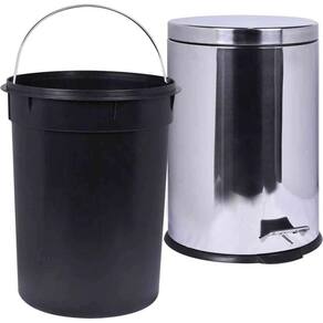 Especificações Capacidade: 3 Litros Balde interno: Removível Pedal: Antiderrapante Material: Aço inox Dimensões: 17x24cm Itens Inclusos 1 Lixeira Redonda 3 Litros Aço Inox Com Pedal Kala Perguntas Frequentes (FAQ) Pergunta: Qual o material da lixeira?