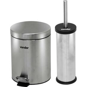 Fabricada em aço inox, maior resistência e durabilidade. Possui balde plástico removível com alça e abertura da tampa por pedal, com sistema de amortecimento. Conta ainda com escova sanitária e suporte em aço inox 410 com tampa.
