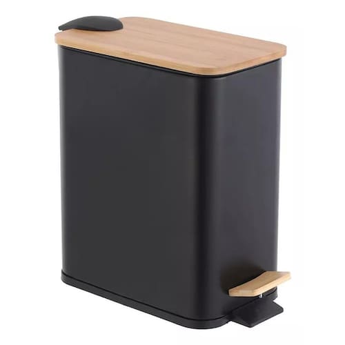 Lixeira Retangular Com Pedal 5l Preta Metal E Bambu Banheiro Paramount Lixeira com Pedal e Tampa de Bambu retangular: Design e Praticidade para sua Casa Dê um toque de elegância e funcionalidade à sua casa com a Lixeira com Pedal e Tampa de Bambu