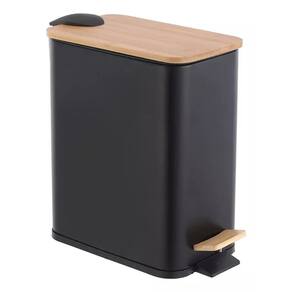Lixeira Retangular Pedal 5L Preta Metal E Bambu Banheiro