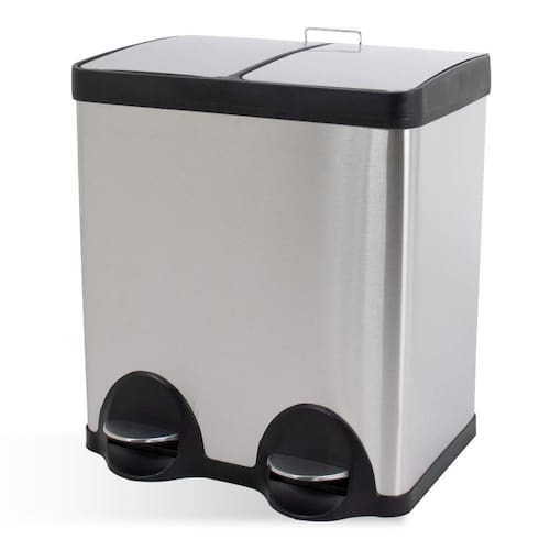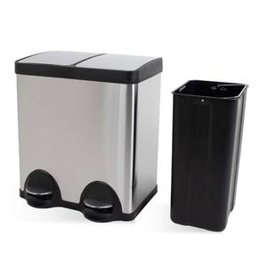 Produzida em aço inox, a lixeira seletiva tem acabamento escovado de alta qualidade e contém base que estabiliza a lixeira e abertura por pedal que evita o contato das mãos.