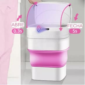 Lixeira com sensor de proximidade que aciona a tampa, mantendo-a aberta por alguns segundos e, automaticamente fechando-a. Composta por polipropileno e silicone e é possível utilizá-la em tamanho completo ou em tamanho mais compacto.