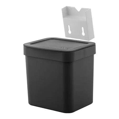 Lixeira Suspensa Com Suporte Para Fixação Trium Compacta Cor: Preto F6075