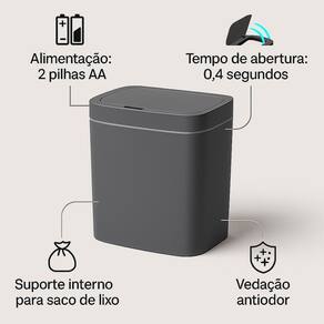 Lixeira Tampa Abertura Inteligente Slim Plástico Capacidade de 15 Litros Para Cozinha Banheiro Escritório Cor: cinza Transforme sua rotina com a Lixeira Automática com Sensor de 15 Litros. Com tecnologia de detecção de movimento, a tampa abre automaticamente, garantindo higiene e praticidade no dia a dia. Seu design moderno e minimalista em plástico ABS de alta resistência está disponível em três elegantes cores: branco, preto e cinza escuro. O sistema de vedação evita a propagação de odores, mantendo o ambiente sempre agradável. A abertura suave e o fechamento em apenas 0,4 segundos oferecem total conforto, enquanto o suporte interno facilita a troca dos sacos de lixo. Ideal para cozinhas, banheiros, escritórios e quartos, a Lixeira Automática é alimentada por 2 pilhas AA não inclusas , com longa duração e funcionamento silencioso. Compacta e eficiente, traz um toque inteligente para sua casa ou escritório. Benefícios: Sensor de movimento inteligente: tampa abre automaticamente. Vedação anti-odor. Fechamento rápido e silencioso 0,4s . Suporte interno para fixação do saco de lixo. Design compacto e moderno em ABS de alta qualidade. Três opções de cores: branco, preto e cinza escuro. Especificações Técnicas: Capacidade: 15 Litros Dimensões: 31cm A x 26cm L x 18,5cm P Alimentação: 2 pilhas AA Material: Plástico ABS Dicas de Uso e Conservação: Utilize em ambientes internos. Limpeza com pano úmido e detergente neutro. Evitar contato com líquidos diretamente na tampa eletrônica. e Segurança: de 90 dias contra defeitos de fabricação. Adquira agora e traga praticidade, higiene e sofisticação para sua casa Marca: Não Informado