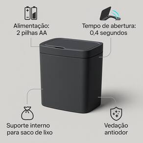 Lixeira Tampa Abertura Inteligente Slim Plástico Capacidade de 15 Litros Para Cozinha Banheiro Escritório Cor: preto Transforme sua rotina com a Lixeira Automática com Sensor de 15 Litros. Com tecnologia de detecção de movimento, a tampa abre automaticamente, garantindo higiene e praticidade no dia a dia. Seu design moderno e minimalista em plástico ABS de alta resistência está disponível em três elegantes cores: branco, preto e cinza escuro. O sistema de vedação evita a propagação de odores, mantendo o ambiente sempre agradável. A abertura suave e o fechamento em apenas 0,4 segundos oferecem total conforto, enquanto o suporte interno facilita a troca dos sacos de lixo. Ideal para cozinhas, banheiros, escritórios e quartos, a Lixeira Automática é alimentada por 2 pilhas AA não inclusas , com longa duração e funcionamento silencioso. Compacta e eficiente, traz um toque inteligente para sua casa ou escritório. Benefícios: Sensor de movimento inteligente: tampa abre automaticamente. Vedação anti-odor. Fechamento rápido e silencioso 0,4s . Suporte interno para fixação do saco de lixo. Design compacto e moderno em ABS de alta qualidade. Três opções de cores: branco, preto e cinza escuro. Especificações Técnicas: Capacidade: 15 Litros Dimensões: 31cm A x 26cm L x 18,5cm P Alimentação: 2 pilhas AA Material: Plástico ABS Dicas de Uso e Conservação: Utilize em ambientes internos. Limpeza com pano úmido e detergente neutro. Evitar contato com líquidos diretamente na tampa eletrônica. e Segurança: de 90 dias contra defeitos de fabricação. Adquira agora e traga praticidade, higiene e sofisticação para sua casa Marca: Não Informado Ean: 7891100062899
