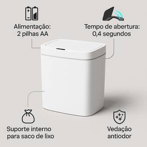 Lixeira Tampa Abertura Inteligente Slim Plástico Capacidade de 15 Litros Para Cozinha Banheiro Escritório Cor: branco Transforme sua rotina com a Lixeira Automática com Sensor de 15 Litros. Com tecnologia de detecção de movimento, a tampa abre automaticamente, garantindo higiene e praticidade no dia a dia. Seu design moderno e minimalista em plástico ABS de alta resistência está disponível em três elegantes cores: branco, preto e cinza escuro. O sistema de vedação evita a propagação de odores, mantendo o ambiente sempre agradável. A abertura suave e o fechamento em apenas 0,4 segundos oferecem total conforto, enquanto o suporte interno facilita a troca dos sacos de lixo. Ideal para cozinhas, banheiros, escritórios e quartos, a Lixeira Automática é alimentada por 2 pilhas AA não inclusas , com longa duração e funcionamento silencioso. Compacta e eficiente, traz um toque inteligente para sua casa ou escritório. Benefícios: Sensor de movimento inteligente: tampa abre automaticamente. Vedação anti-odor. Fechamento rápido e silencioso 0,4s . Suporte interno para fixação do saco de lixo. Design compacto e moderno em ABS de alta qualidade. Três opções de cores: branco, preto e cinza escuro. Especificações Técnicas: Capacidade: 15 Litros Dimensões: 31cm A x 26cm L x 18,5cm P Alimentação: 2 pilhas AA Material: Plástico ABS Dicas de Uso e Conservação: Utilize em ambientes internos. Limpeza com pano úmido e detergente neutro. Evitar contato com líquidos diretamente na tampa eletrônica. e Segurança: de 90 dias contra defeitos de fabricação. Adquira agora e traga praticidade, higiene e sofisticação para sua casa Marca: Não Informado Ean: 7906474876024