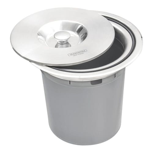 Lixeira de Embutir Tramontina Clean Round em Aço Inox com Balde Plástico 5 LitrosCom a Lixeira de Embutir Tramontina, você vai deixar sua cozinha mais organizada e cheia de estilo. Produzida em aço inox, a lixeira de embutir possui balde plástico removível, que facilita a limpeza e retirada do lixo. O aro interno tem um anel de vedação, garantindo que os odores fiquem dentro da lixeira.Instalação: EmbutirMaterial: Aço Inox AISI 304Espessura: 1 mmAcabamento: PolidoTampa: SimBalde plástico removível: SimCapacidade: 5 LSaco de lixo recomendado: 10 - 15 LDimensões:24,9 x 24,9 x 22,2 cm (Compr x Larg x Alt)Peso: 0,88 kgCapacidade: 5.00 LProduto novo original Tramontina, acompanha nota fiscal.