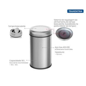 Lixeira Tramontina Institucional Inox 65 L Tampa Basculante Lixeira Tramontina Institucional em Aço Inox com Acabamento Escovado 65 L com Tampa Basculante Para deixar ambientes corporativos mais limpos e cheios de estilo, a lixeira Tramontina Institucional em aço inox com acabamento escovado 65 litros com tampa basculante é indispensável. Ela pode ser utilizada em ambientes internos, compondo-os de maneira diferenciada e cheia de requinte, pois sua produção é totalmente em aço inox com acabamento escovado. A lixeira ainda vem com tampa basculante, que não deixa o lixo descartado aparente. Escolha Tramontina e tenha itens de qualidade completando seus espaços institucionais!