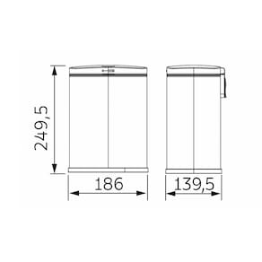 Especificações Balde Removível: Sim Dimensões AxLxP (mm): 249,5x186x139,5 Cor: Aço Acetinado Material: Aço Inox AISI 430 Garantia: 1 ano junto ao fabricante Capacidade: 3L Tampa com Sistema Stay Open: Sim Espessura: 0,4 mm Tampa Soft Close: Sim Tratamento Anti-Digitais: Sim