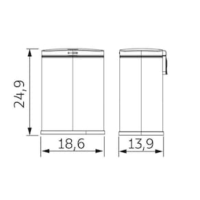 Material: Aço Inox AISI 430Espessura: 0,4 mmAcabamento: AcetinadoTratamento antidigitais: SimPegador para : SimTampa: SimFechamento suave da tampa: SimBalde plástico: SimCapacidade: 3 LSaco de lixo recomendado: 5 - 10 LTodas as imagens são meramente ilustrativas.