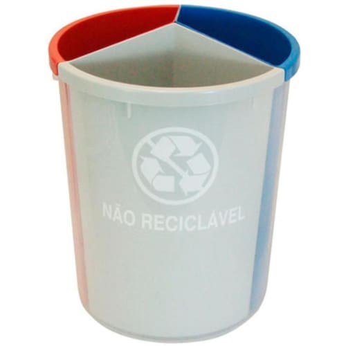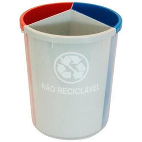 Lixeira mix para coleta seletiva com 3 divisões - cinza/vermelha/azul Lixeira e divisórias internas fabricadas em plástico polipropileno resistente com proteção uv evita o desbotamento da cor . Ideal para proporcionar um sistema de coleta seletiva adequado para diversos ambientes cores indicativas para descarte de resíduos não recicláveis cinza , plásticos e embalagens vermelho , papéis e papelões azul formando um conjunto que proporciona produtividade, limpeza eficiente e responsabilidade socioambiental, economizando tempo, recursos e esforços manuais de equipes de limpeza em praças, parques, condomínios, empresas, hotéis e demais espaços públicos ou privados. Cores Cinza não recicláveis Vermelho plásticos Azul papéis Acompanha Adesivos identificadores Descrição técnica Material cesto: plástico polipropileno com proteção uv Material divisórias: plástico polipropileno com proteção uv Medidas a x d : 39,8 x 31,5 cm Peso: 1,82 quilos Capacidade individual de cada divisória: 8 litros Capacidade total do conjunto: 26 litros Marca: Não Informado