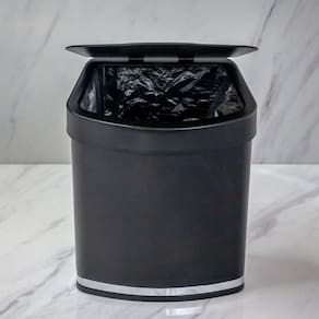 Fabricada em resina plástica de alta qualidade e com tamanho compacto, a lixeira é ideal para ser deixada sobre a pia ou a bancada. Sua tampa removível permite deixar o saquinho de lixo fixo e não aparente.Conta com acabamento em aço carbono cromado (aço em formato achatado) que traz destaque ao objeto usual do cotidiano.Medidas:Profundidade: 13cm / Largura: 18cm / Altura: 21cm / Peso: 0.421 kgEspecificações:Matéria-prima: Resina Plástica + Aço CarbonoCor/Acabamento: Preto / CromadoCapacidade: 2,5 litrosDicas de uso:- Para limpeza periódica recomenda-se o uso de um pano macio, água e sabão neutro.- Nunca utilize materiais abrasivos, lã de aço, esponjas ásperas, solventes ou produtos químicos corrosivos (cloro, água sanitária).INFORMAÇÕES IMPORTANTES:- A(s) cor (es) dos produtos podem sofrer variação de tonalidade, de acordo com a configuração do seu dispositivo ou monitor.