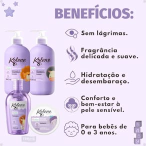 Enriquecido com ingredientes naturais como óleo de baobá e a suave fragrância de lavanda, este conjunto completo proporciona hidratação profunda, limpeza delicada e um perfume leve e agradável, livre de corantes e álcool etílico. Proporcione ao seu bebê todo o cuidado que ele precisa com a confiança da marca Kolene.