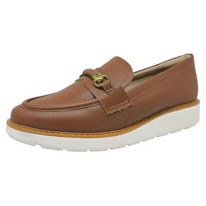 Seu cabedal é confeccionado em material resistente de alta qualidade e recebe um acabamento especial com uma tira macia e aplique metalizado em formato de corrente, que dá um toque de sofisticação e personalidade. Perfeito para compor looks casuais elegantes, esse loafer é um verdadeiro curinga para o guarda-roupa feminino.