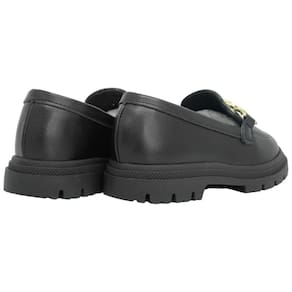 O design do Loafer apresenta um perfil clássico, com um bico arredondado e um recorte elegante no peito do pé. Ele é especialmente projetado para se ajustar ao pé das meninas com conforto e estilo. A característica mais marcante deste Loafer é sua sola tratorada. Esta sola robusta e aderente não apenas proporciona uma ótima tração, tornando-o adequado para várias atividades, mas também adiciona um toque moderno e arrojado ao design tradicional do Loafer.