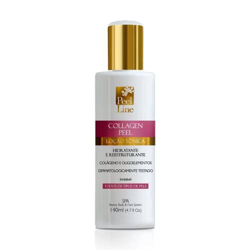 Para todos os tipos de pele, hidrata profundamente e reestrutura a pele dando suporte ao tecido conjuntivo (derme), responsável pela resistência e elasticidade. Tonificante, ela ativa a síntese do Colágeno e minimiza o envelhecimento cutâneo, além de amenizar a flacidez tissular. Benefícios:. Reestruturante. Tonificante. Hidratante intenso. Ionizável Ativos: Colágeno, Oligoelementos, Acerola, Lúpulo, Calêndula, Ginkgo Biloba e Alantoína. Modo de usar: Após a higienização da pele, aplique a Loção de Colágeno e ionize em polaridade (+). Faça bandagem sobre a pele. Pode ser utilizado também com a micro-corrente com excelentes resultados. Pode ser usada no rosto ou corpo (seios, regiões glúteas, pernas, braços, entre outros). :: Peles desvitalizadas e maduras:: Dermatologicamente Testado Versão personal care: 140mlRendimento: aprox. 280 aplicações EAN: 789823694117-3