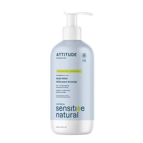 Loção corporal ATTITUDE para pele sensível com aveia, verificada pelo EWG, testada dermatologicamente, vegana, extra suave, sem perfume, 16 ml