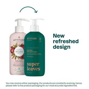 Loção corporal ATTITUDE, hidratante verificado pelo EWG, produtos veganos para o cuidado da pele, não gordurosos, hidratantes para pele seca, sem crueldade, brilhantes, com folhas de videira e romã, 16 fl oz