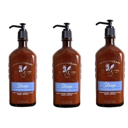 Loção corporal Lot of 3 Bath & Body Works Aromaterapy Lavanda Vanilla, 6,5 fl oz cada. O óleo essencial de lavanda e o Absoluto de Baunilha ajudam a acalmar os sentimentos de desconforto para que você possa dormir melhor. Esta loção corporal ultra cremosa e nutritiva é formulada para dar hidratação duradoura à pele. Esta fórmula contém vegetais e minerais preciosos - o lírio de água branca e a malaquita são conhecidos por ajudar a acalmar a pele para que ela tenha a melhor aparência e sensação. Formulada para fornecer umidade durante todo o dia. Respire profundamente para obter melhores resultados. Perfumado com óleos essenciais e outras fragrâncias naturais. Não testado em animais