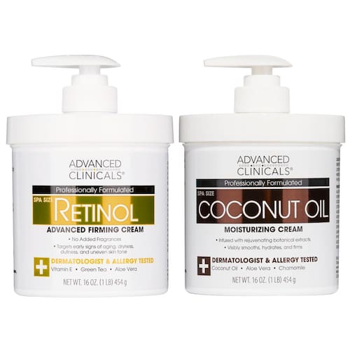 Loção corporal Advanced Clinicals Retinol + creme de óleo de coco conjunto de 2 peças | Loção hidratante facial e creme corporal | Tratamento crepey para cuidados com a pele | Loção corporal de coco + creme de retinol visa a pele crepe