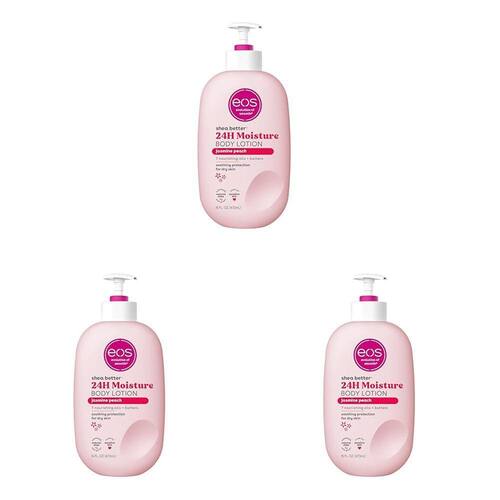 Loção corporal eos Shea Better — Jasmine Peach, hidratante para a pele 24 horas, leve e não oleosa, feita com karité l, vegana, 16 fl oz (pacote com 3)