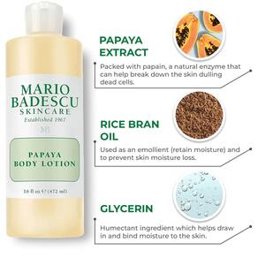 Loção corporal Mario Badescu Papaya, 16 ml — Fresca e frutada — Reduz a pele seca e áspera — Fórmula esfoliante e suavizante — Fórmula suavizante de manteiga de karité