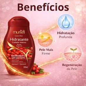 Descubra o segredo para uma pele profundamente hidratada, firme e rejuvenescida com a Loção Deo Hidratante Corporal Muriel Rosa Mosqueta Com Colágeno 200ml. Este dermocosmético de alto valor agregado é ideal para quem busca hidratação intensiva com ação reparadora e anti-idade. Sua fórmula exclusiva, enriquecida com óleo de rosa mosqueta e colágeno hidrolisado, atua na regeneração celular e elasticidade da pele. Perfeita para todos os tipos de pele, especialmente as mais ressecadas, esta loção deixa a pele macia, sedosa e com uma fragrância suave.