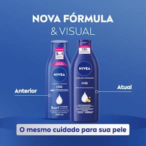 NIVEA Loção Hidratante Milk Pele Seca a Extrasseca é um produto desenvolvido para hidratar profundamente a pele, proporcionando um cuidado intensivo.